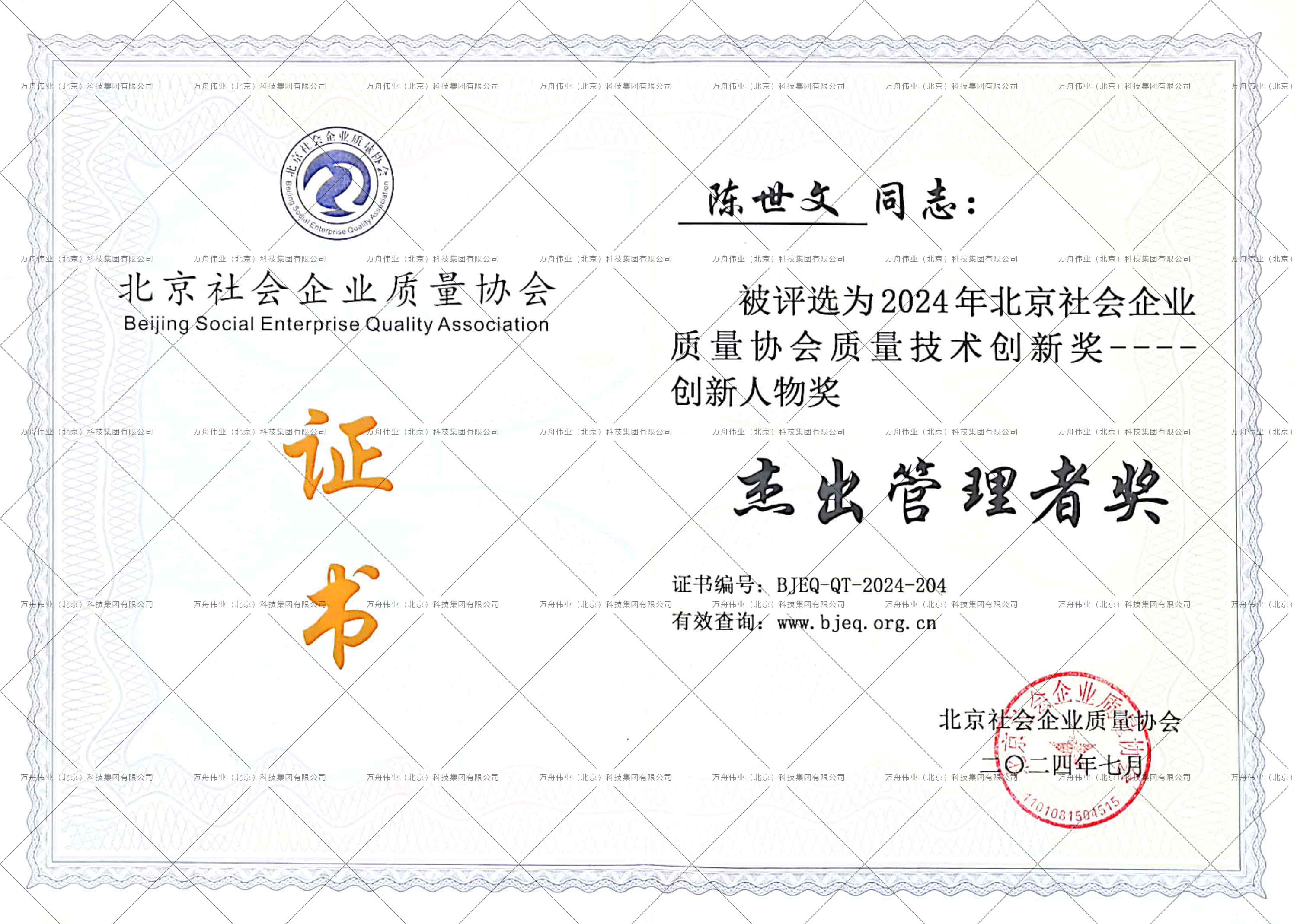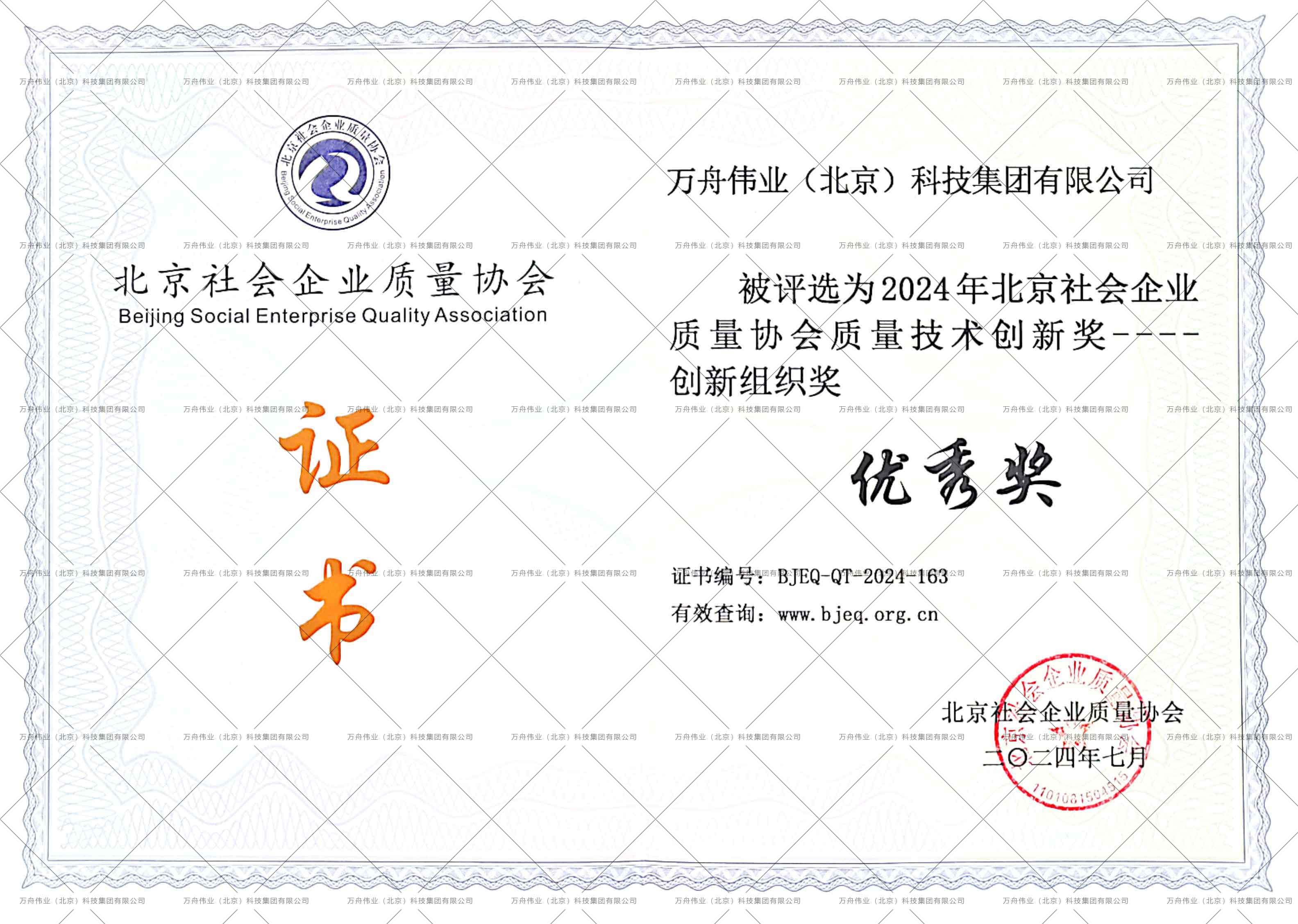 《北京企业质量协会证书》